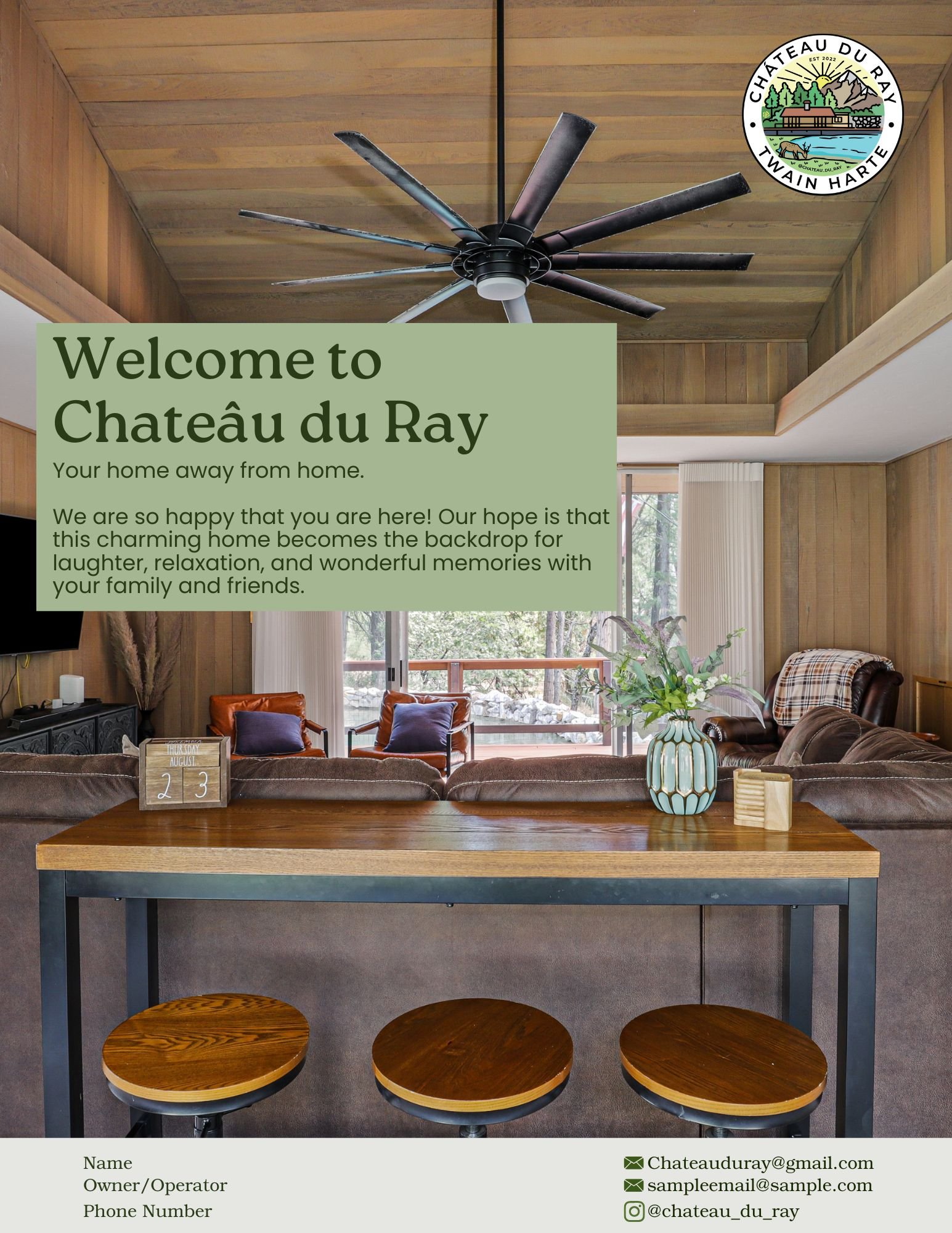 Branded guest welcome kit with Wi-Fi info, house rules, and local tips - designed to elevate the guest experience and save time for the host.